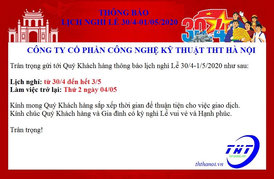 TRÂN TRỌNG THÔNG BÁO LỊCH NGHỈ LỄ 30/4-1/5/2020 NHƯ SAU: