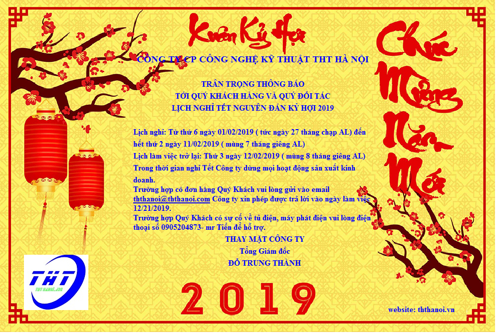 TRÂN TRỌNG KÍNH BÁO LỊCH NGHỈ TẾT NGUYÊN ĐÁN KỶ HỢI 2019